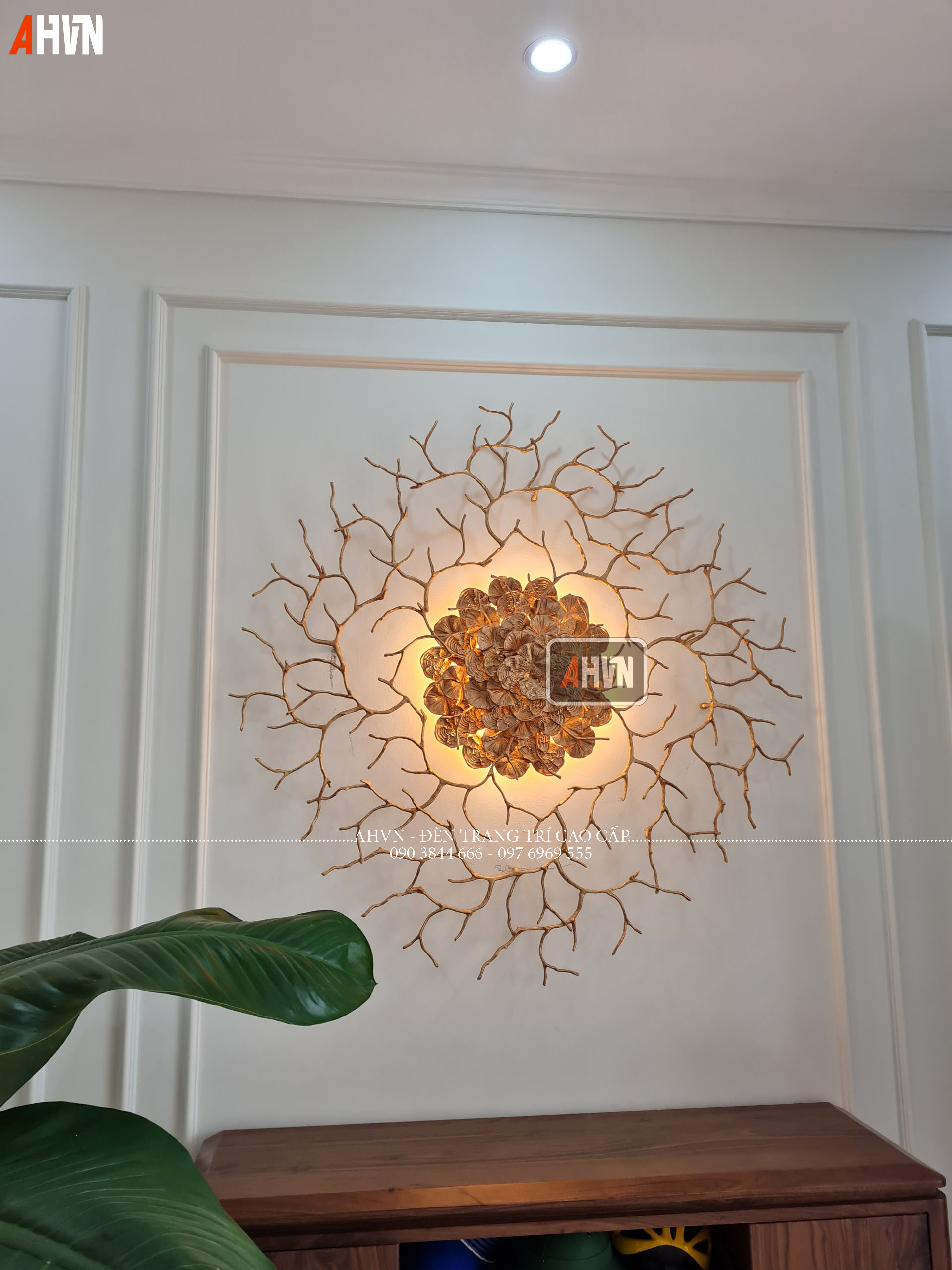 Mỗi chi tiết, mỗi nhánh uốn cong đều được rèn, gò, và hàn nối thủ công, tạo nên cấu trúc tỏa tròn như một bông hoa kim loại đang nở rộ giữa không gian – mềm mại, sống động và đầy chiều sâu.