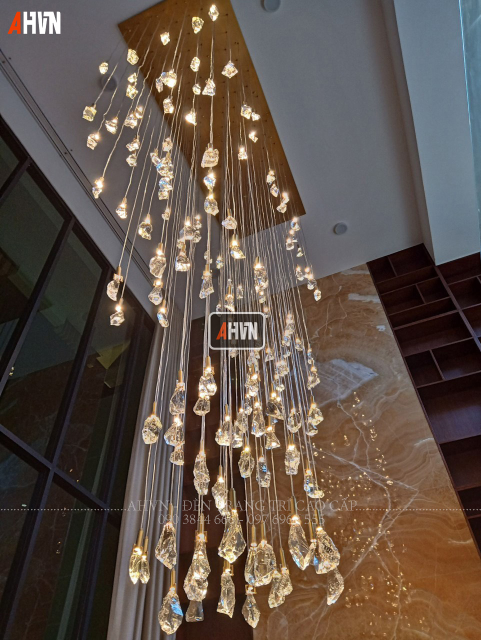 Đây không chỉ là một chiếc đèn trang trí, mà là một tác phẩm ánh sáng – nơi sự chính xác của kỹ thuật gặp gỡ sự tự do của nghệ thuật. Mỗi tia sáng rơi xuống như dòng chảy của pha lê, mang theo câu chuyện về sự trung thực trong chất liệu và tận tâm trong chế tác – những giá trị mà AHVN luôn theo đuổi.