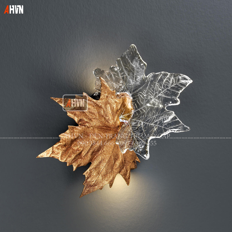 Chiếc đèn gắn tường này là sự kết hợp hiếm gặp giữa đồng thau thủ công và pha lê chế tác tay, tái hiện hình ảnh chiếc lá phong đang chuyển mùa. Không phải một sản phẩm trang trí thông thường — đây là một “mảnh điêu khắc ánh sáng”, nơi vật liệu thật được nâng tầm thành một ngôn ngữ của cảm xúc.