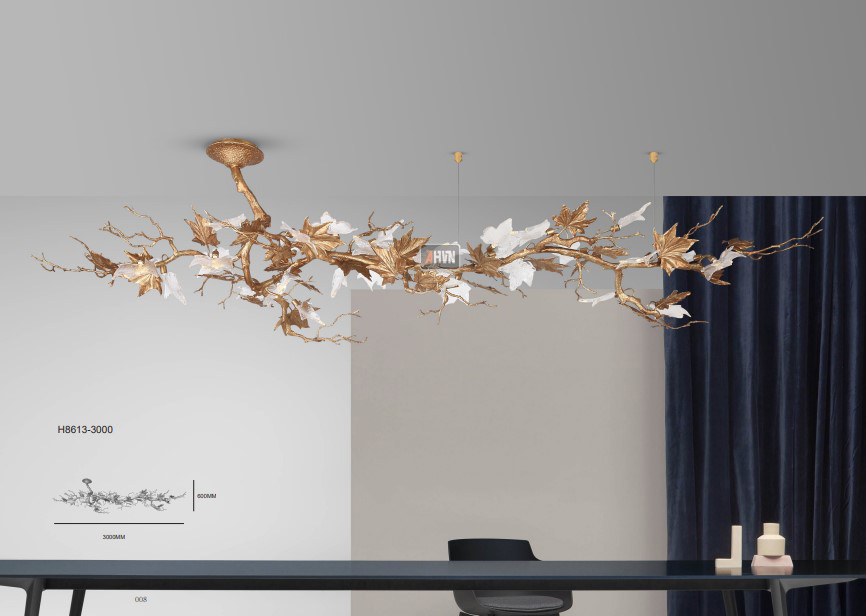 📏 Kích thước: L3000 × W1000 × H600mm — phù hợp với khu vực bàn ăn siêu lớn (chiều dài bàn từ 4m đến 5m), khu vực lễ tân khách sạn, nhà hàng, hoặc bất kỳ không gian nào anh/chị muốn tạo điểm nhấn bằng ánh sáng.