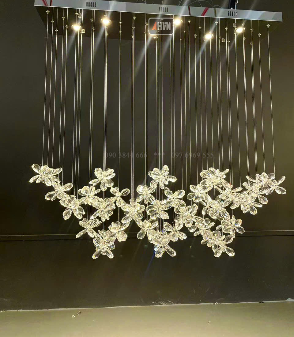 Cho thông tầng – đại sảnh: có thể kéo dài theo trục đứng, tạo hiệu ứng rủ pha lê ấn tượng, phù hợp những không gian có chiều cao lớn.