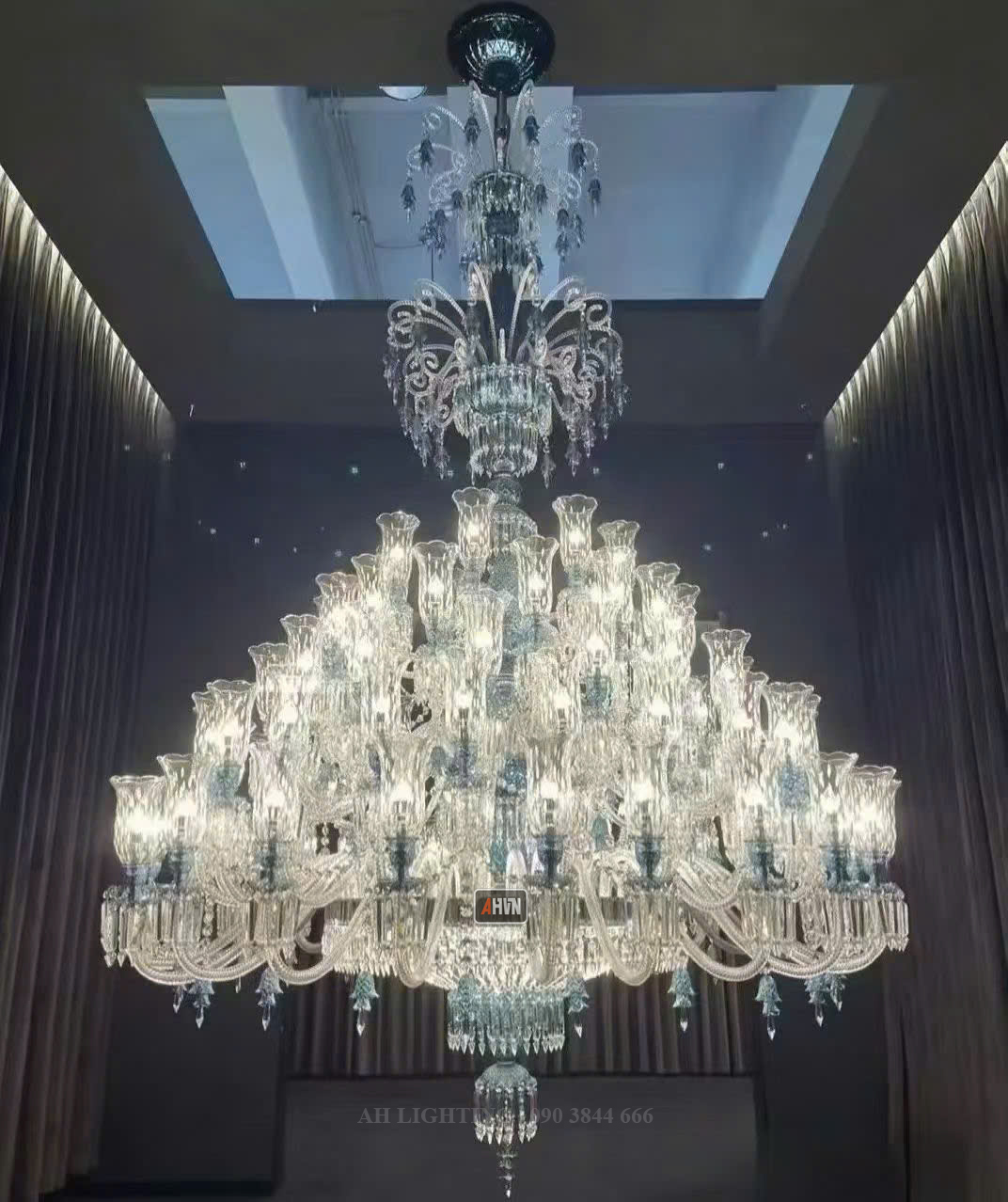 Chiếc đèn pha lê này được chế tác hoàn toàn thủ công — từ từng cánh tay đèn uốn lửa, đến từng chi tiết pha lê được mài, tạo hình và đánh bóng bằng tay. Toàn bộ cấu trúc được xây dựng bằng pha lê cao cấp, với hai lựa chọn vật liệu để khách hàng cân đối mức đầu tư mà vẫn giữ nguyên giá trị thẩm mỹ và chất lượng ánh sáng.