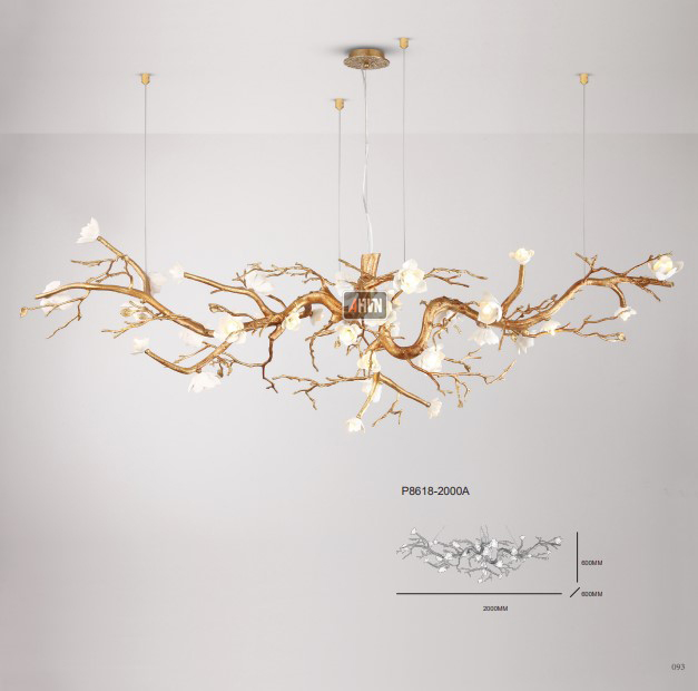 Mẫu đèn trần C8618-1200A là một thiết kế mang cảm hứng từ thiên nhiên, tái hiện hình ảnh những nhánh cây mùa nở hoa bằng vật liệu thật và kỹ thuật thủ công chuẩn mực.