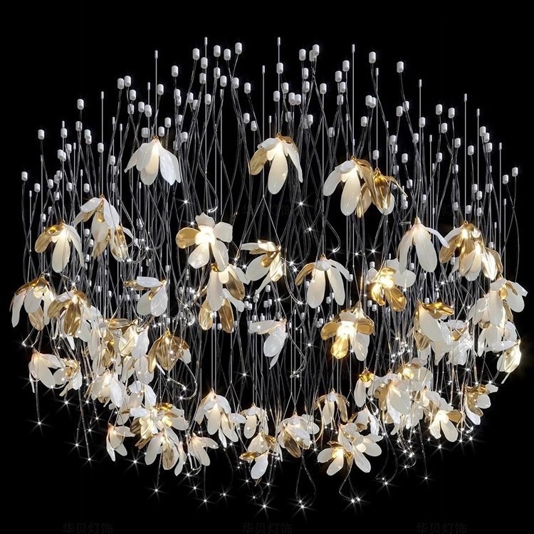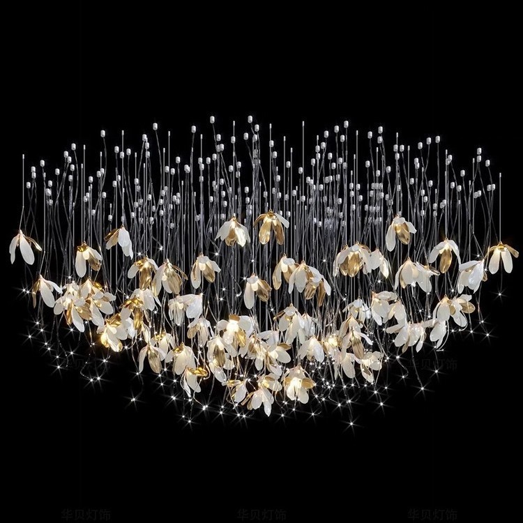 Thiết kế cho phép tùy chỉnh kích thước – mật độ – hình dáng rơi để phù hợp với nhiều loại không gian: phòng khách, bàn ăn, thông tầng cao… Tùy nhu cầu, đèn có thể lắp kèm mâm inox hoặc không dùng mâm.