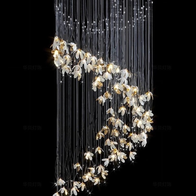 Chiếc đèn nghệ thuật này được chế tác từ gốm thủ công, kết hợp cùng hệ sợi quang tạo nên hiệu ứng ánh sáng mềm, lan toả như đàn chim đang bay giữa không trung. Phần mâm đèn bằng inox tráng gương giúp phản xạ ánh sáng tốt, giữ cho tổng thể luôn thanh thoát và sạch về đường nét.