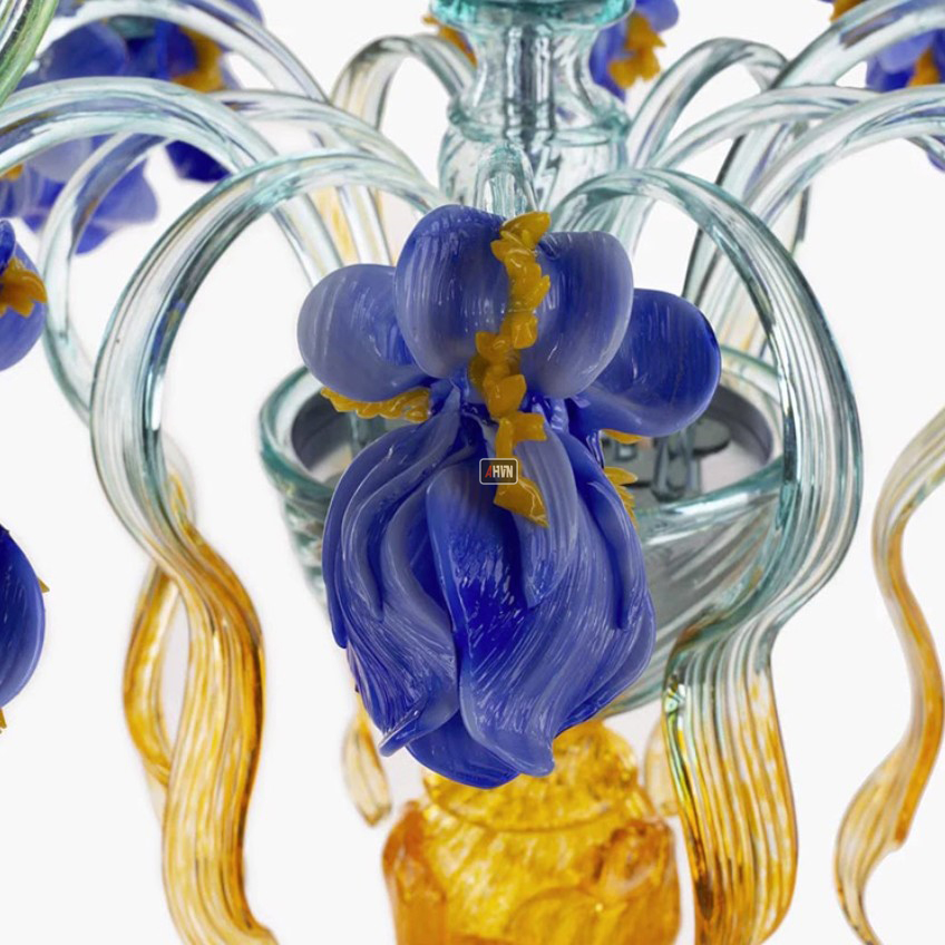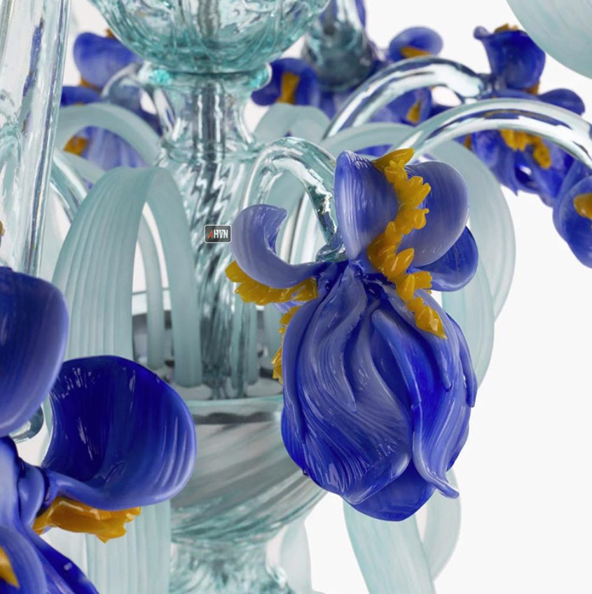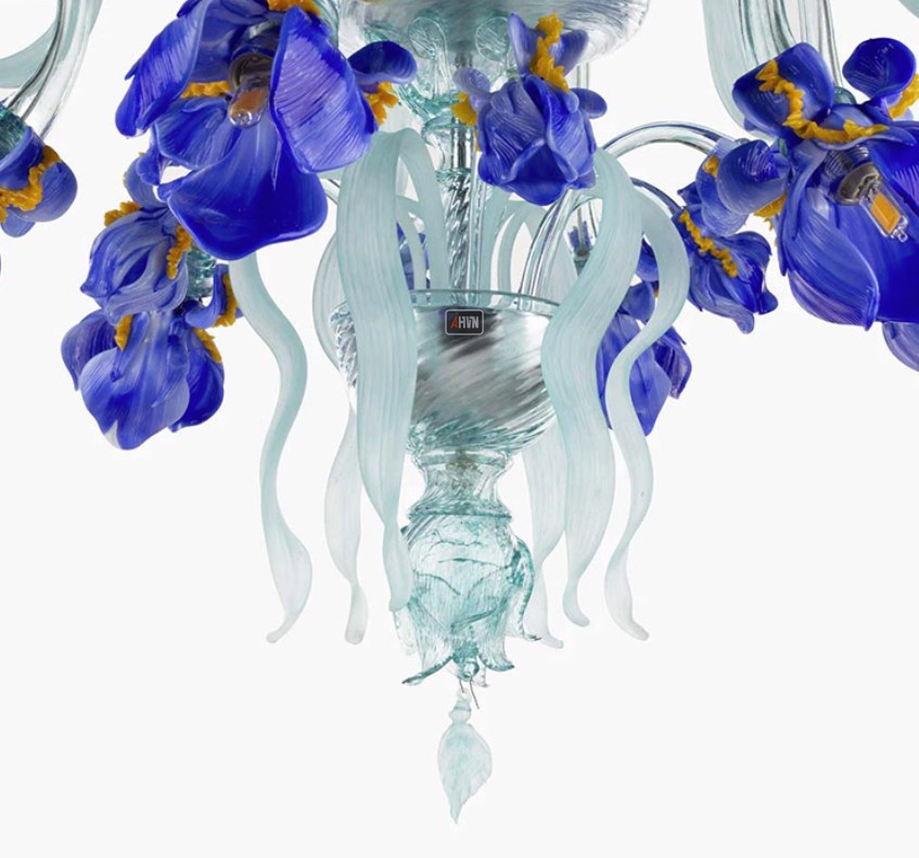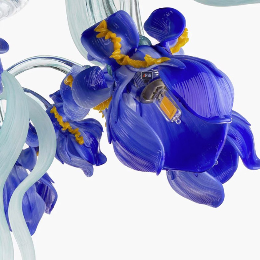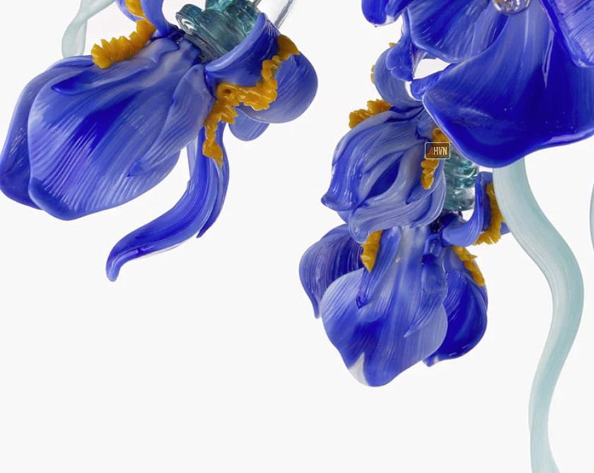 Những bông hoa màu xanh tím được thổi thủ công, từng cánh uốn cong tự nhiên.